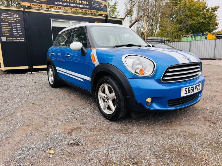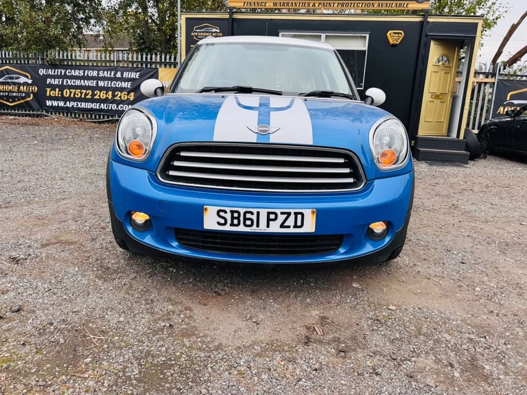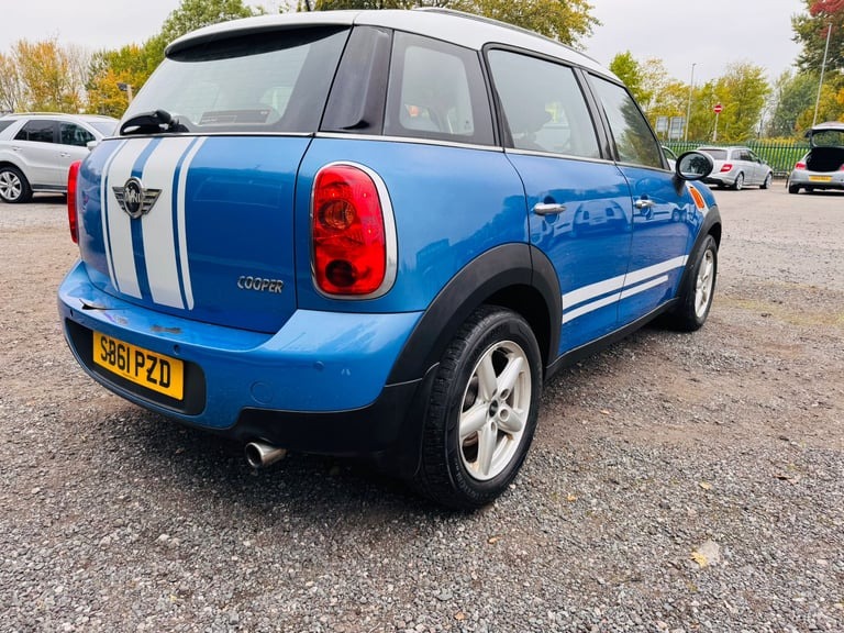 Experience the thrill of driving with this 2011 MINI Countryman, featuring a striking blue exterior complemented by stylish white racing stripes.This particular model boasts a 1.6 litre petrol engine, offering a balanced blend of performance and efficiency. Inside, you’ll find essential comfort features, including air conditioning to keep you cool on warmer days. For your entertainment and connectivity needs, it comes equipped with basic Bluetooth functionality, allowing for hands-free calls and USB audio playback.
